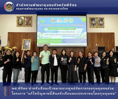 ระหว่างวันที่ 16 - 20 กุมภาพันธ์ 2569 ณ หอประชุมสิริสองแคว ศูนย์ศึกษาและพัฒนาชุมชนพิษณุโลก นางสาววริศรา โสภาค ผู้ตรวจราชการกรม ปฏิบัติหน้าที่ ผู้อำนวยการศูนย์ศึกษาและพัฒนาชุมชนพิษณุโลก เป็นประธานในพิธีเปิดโครงการ “แก้ไขปัญหาหนี้สินครัวเรือนของประชาชนโดยทุนชุมชน” กิจกรรมศึกษาและแลกเปลี่ยนเรียนรู้ และฝึกอาชีพสู่การแก้ไขปัญหาหนี้สินครัวเรือนของประชาชน พร้อมบรรยายพิเศษในหัวข้อ “แนวทางการขับเคลื่อนงานพัฒนาทุนชุมชน ขับเคลื่อนเศรษฐกิจฐานราก”